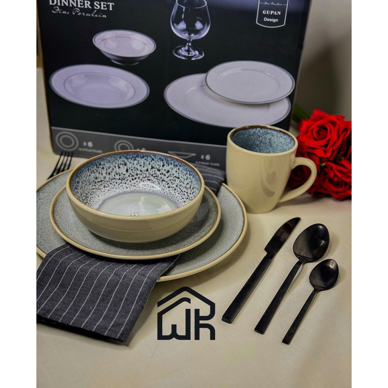 يُصنع طقم الصحون من مواد مصنوع من البورسلين أو السيراميك، مما يضفي عليها لمسة من الفخامة والمتانة.