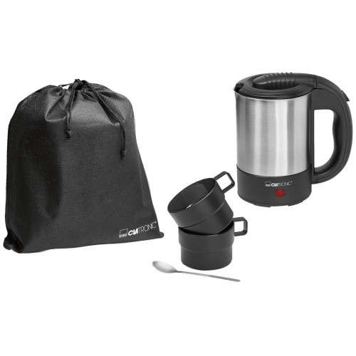 غلاية للسفر من الفولاذ المقاوم للصدأ 500مل 1000واط مع كوبين، ملعقة وكيس سفر WKR 3624