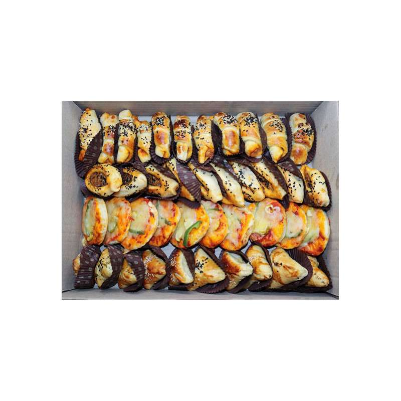 بوكس معجنات حار متكون من 10 بيتزا 10 كرواسون 10 مرسيدس 10 صفيحة |