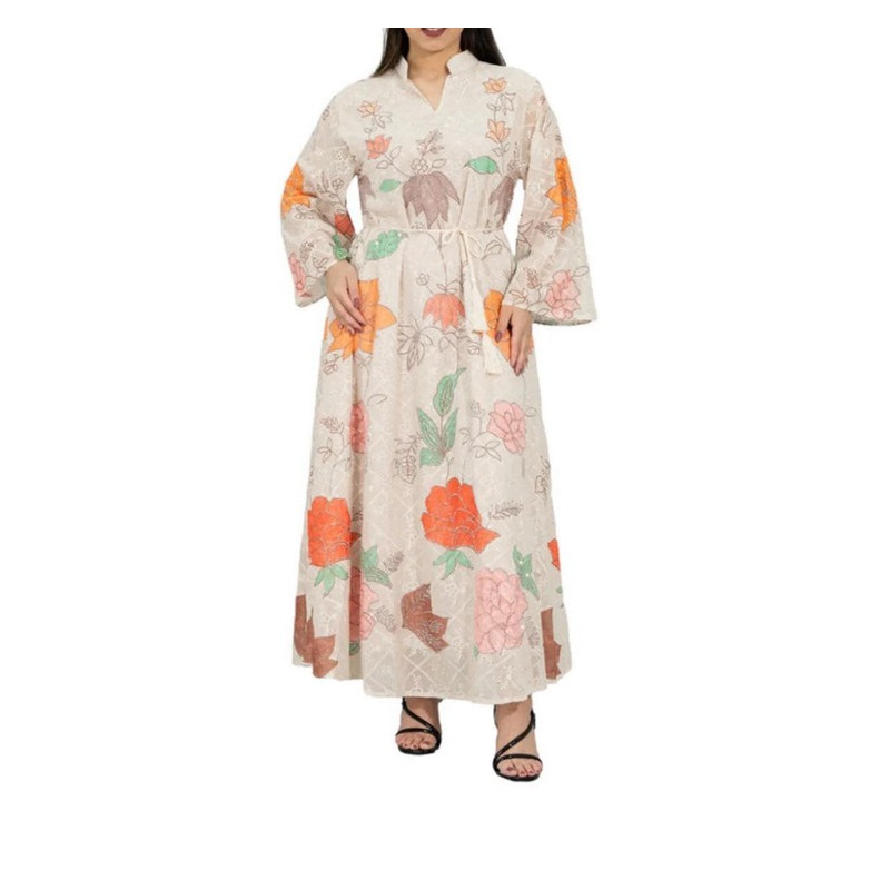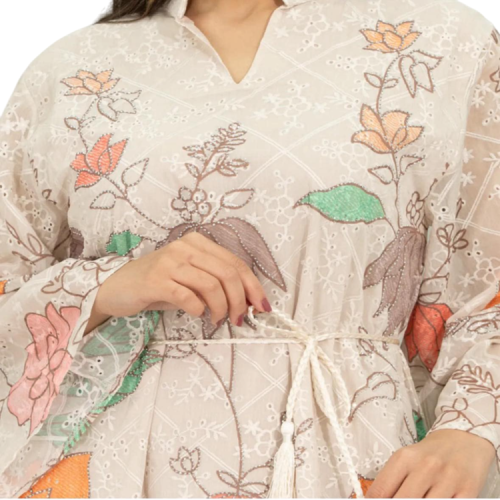 يأتي بقصة واسعة تنساب بانسيابية لمتنح الراحة والاناقة في آن واحد ، واكمام طويلة واسعة