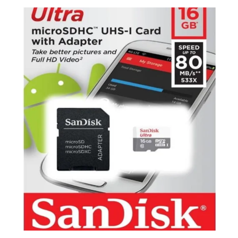 قم برفع مستوى التخزين الرقمي الخاص بك باستخدام بطاقة الذاكرة SanDisk 16 جيجابايت.