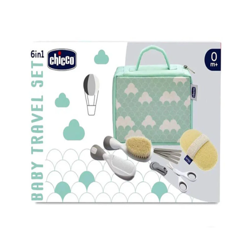 طاقم ادوات تنظيف 6 في1يتكون من مجموعة مميزة من الادوات التي تحتاجينها لطفلك : مشط شعر - فرشة شعر - مقص أظافر - اسفنجة استحمام - مقص- مبرد اظافر