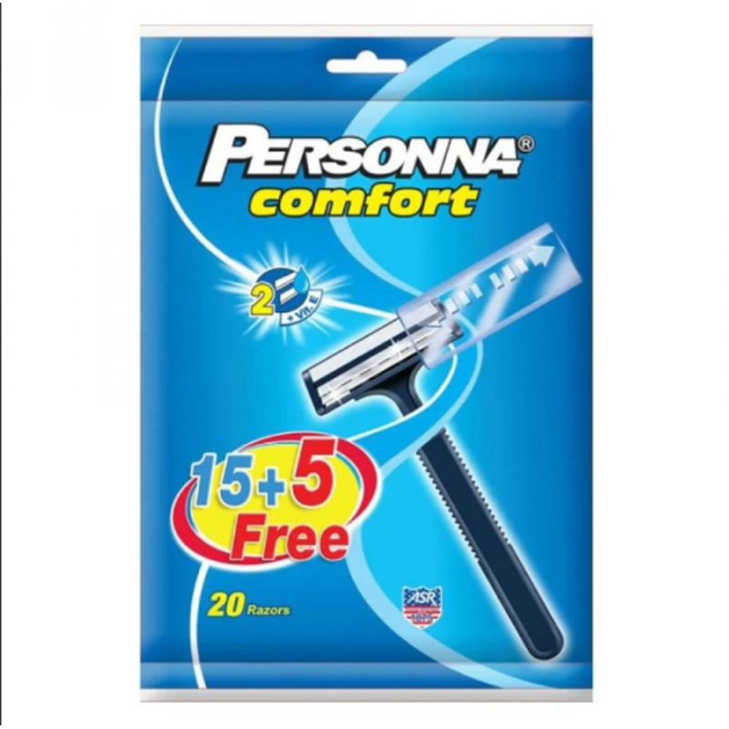بيرسونا كومفورت 2 ماكينات حلاقة للرجال شفرتين مع الصبار وفيتامين إي 15+5 ماكينات