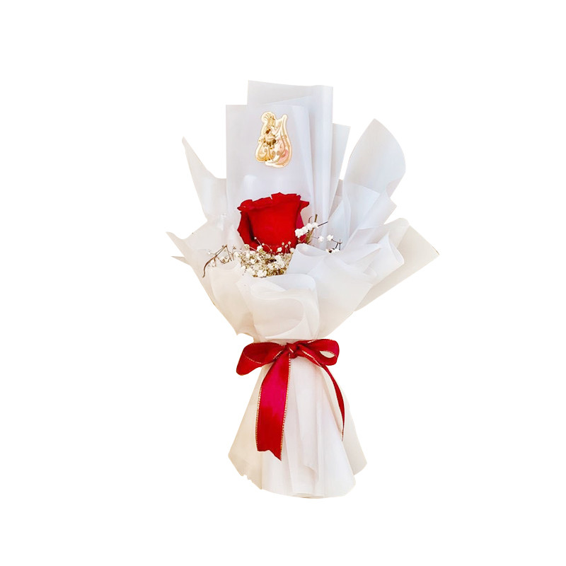 باقة وردة طبيعية باللون الاحمر مع زهور جبسوفيليا
