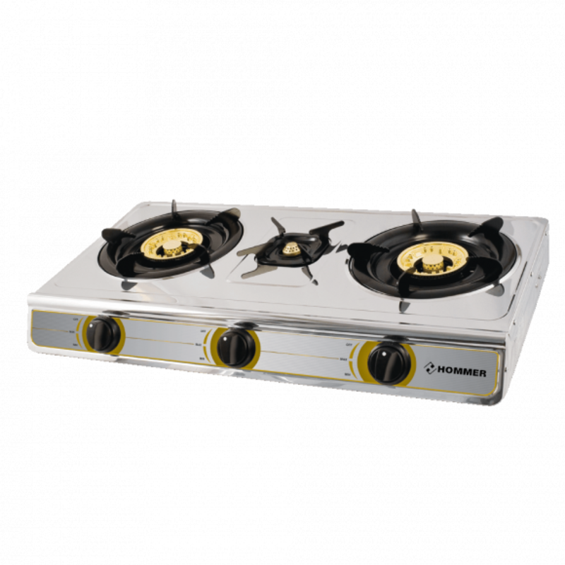 موقد غاز مزود ب3 رؤوس غاز نحاسية و3 قواعد داعمة للطبخ