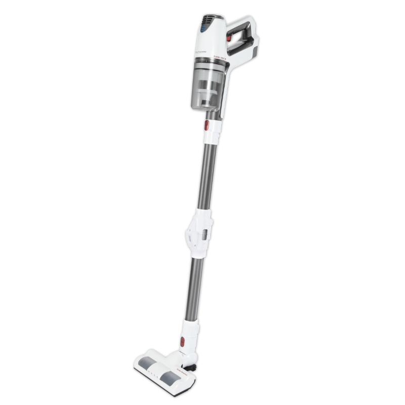 التنقل الأمثل بفضل المفصل المزدوج الذي يدور بزاوية 180 درجة، وفرشاة الأرضية الدوارة كهربائيًا المزودة بإضاءة LED