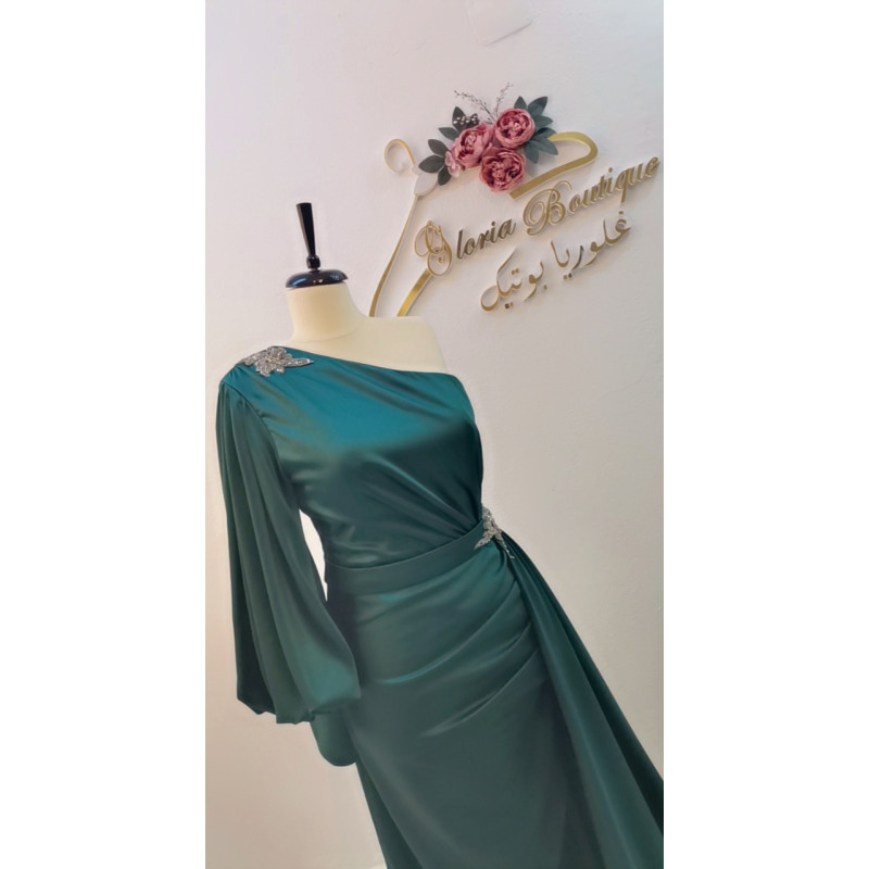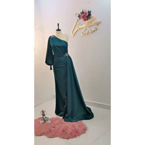 يتميز هذا الفستان بتصميمه الراقي والجميل، وقصته الأنيقة والتفاصيل المتقنة، بأفخم أنواع من قماش الستان