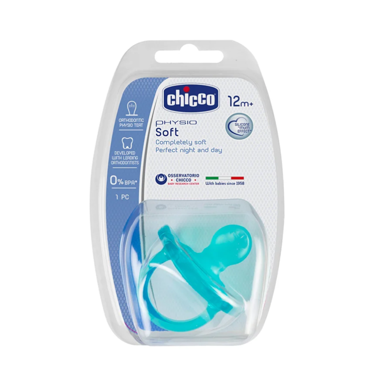 A baby pacifier made of silicone that fits the roof of the mouth, supports the tongue and leaves it in the correct comfortable position.