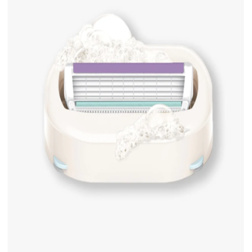 Luxury women's razor designed with four blades and built-in moisturizing shaving gel.